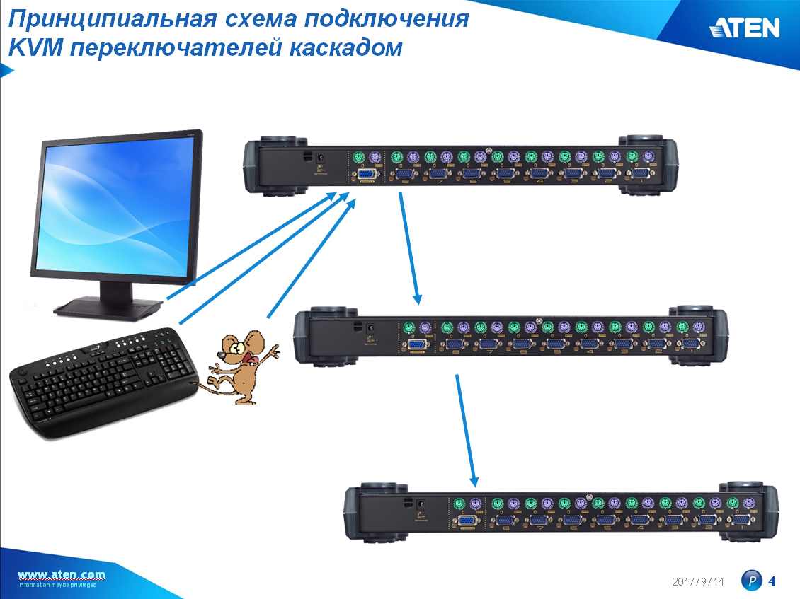Схема соединения каскадом переключателей ATEN.