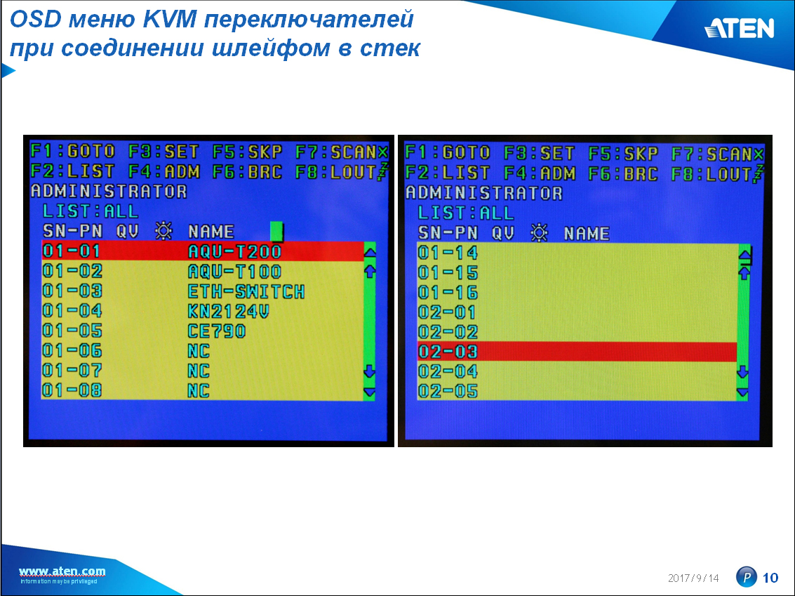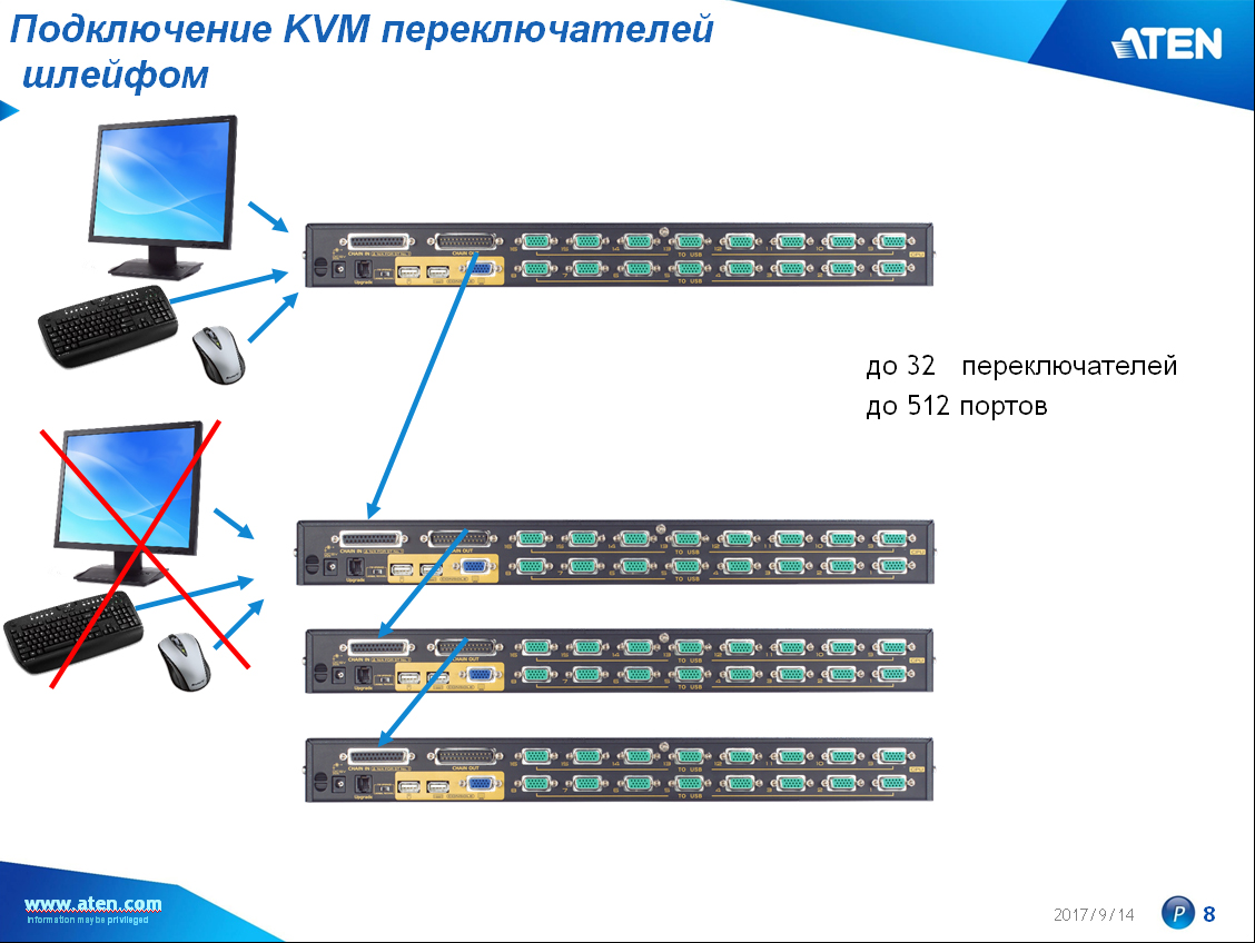 Схема соединения KVM-переключателей ATEN шлейфом.